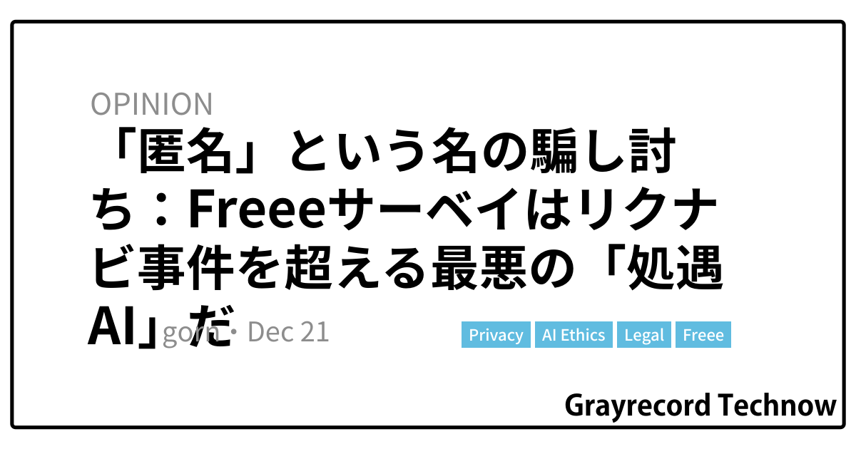 「匿名」という名の騙し討ち:Freeeサーベイはリクナビ事件を超える最悪の「処遇AI」だ