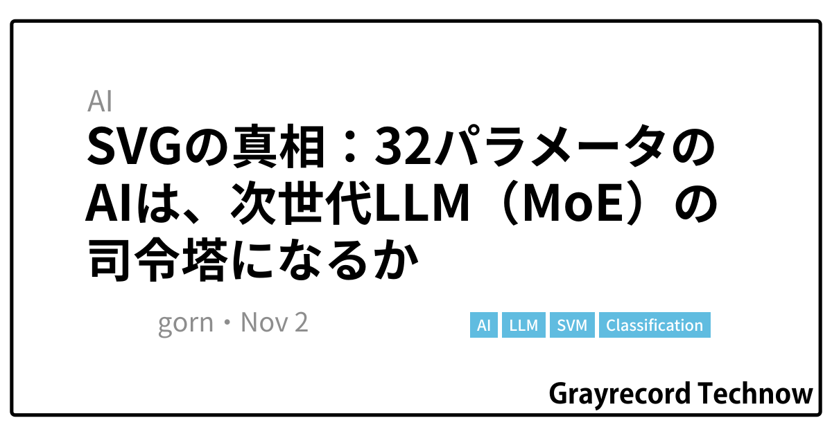 「32パラメータのLLM」というセンセーショナルな見出しから始まったSVGの物語は、その実態を探ることで「LLMの知識と古典的アルゴリズムの効率性を融合させた、超高効率な分類エンジン」という、より深く、そして魅力的な真実にたどり着きました。